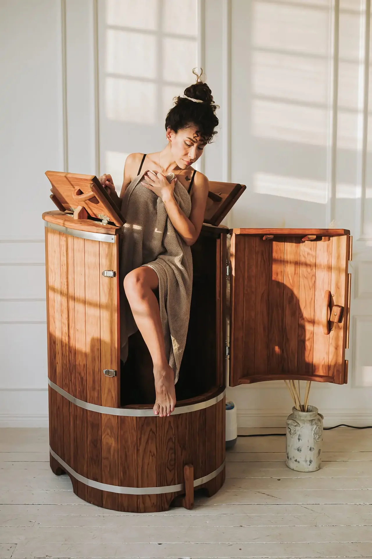Erlebe die wohltuende Wirkung einer Kräuterdampfkabine in den eigenen vier Wänden. Die Fitosauna kombiniert die Vorteile einer klassischen Sauna mit der Kraft ausgewählter Heilkräuter – für Entspannung, Entgiftung und Regeneration.