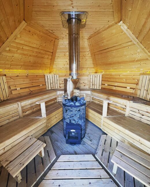 Diese Sauna wurde vom Hersteller so konstruiert, dass man das ganze Jahr hindurch unkompliziert und gesund saunieren kann. Ein mit Holz beheizter Saunaofen garantiert ein ursprüngliches Saunagefühl und macht das Saunabad für alle zum Erlebnis. Alternativ kann die Sauna auch mit einem Elektroofen ausgestattet werden.