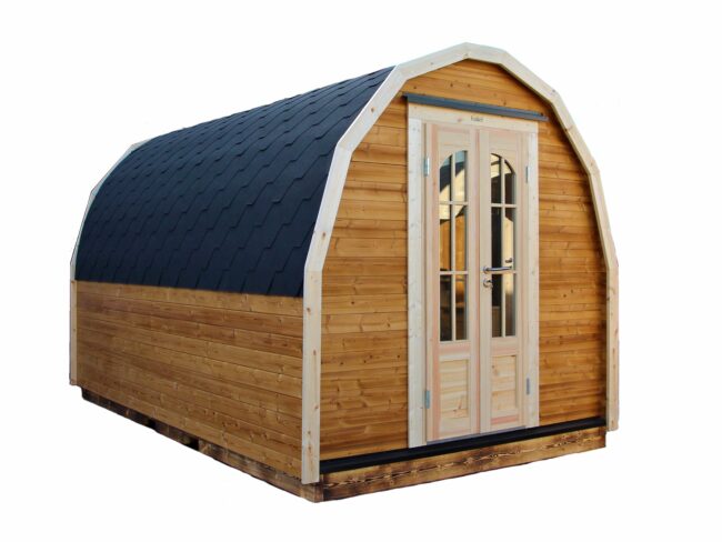 Der Sauna Pod überzeugt durch sein kompaktes, modernes Design, ideal für kleine Gärten.