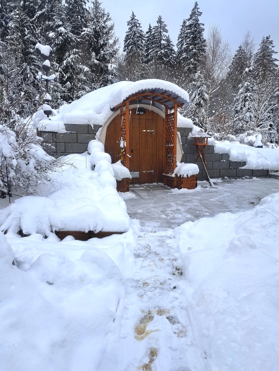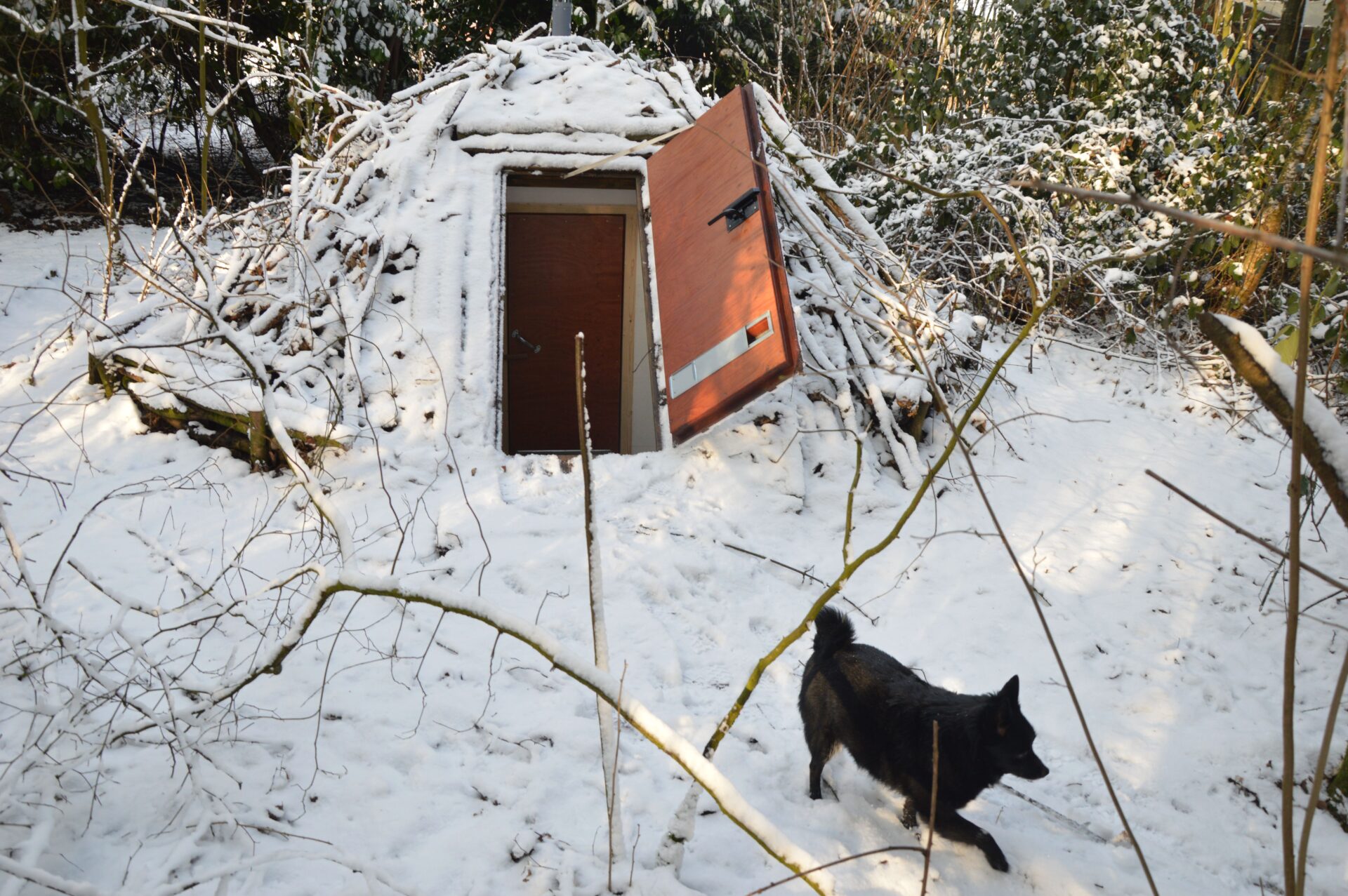 Die Kellerrückseite muss nicht zu hoch ausgeführt werden , kann aber ein harmonischer, naturnaher Teil des Gartenerscheinungsbildes sein oder als abenteuerlicher Spielplatz für Kinder dienen, wenn der Schnee fällt (z .B. Rutsch – und Rodelbahn).