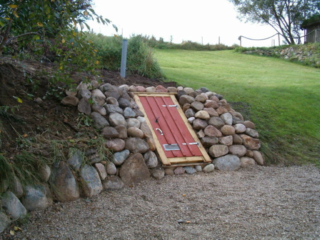 Der hier angelegte Erdkeller passt sich gut ins Gelände ein. So wie sich die Freizeitkultur erhöht, vergrößert sich auch der Bedarf an guten Lagermöglichkeiten. In der Vergangenheit war ein Rübenkeller für jede Familie auf dem Lande aktuell und notwendig. In der heutigen Wohnkultur haben normalerweise die unterirdischen Keller den Vorrang.