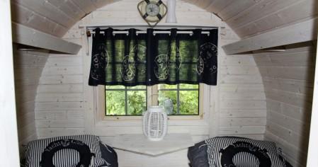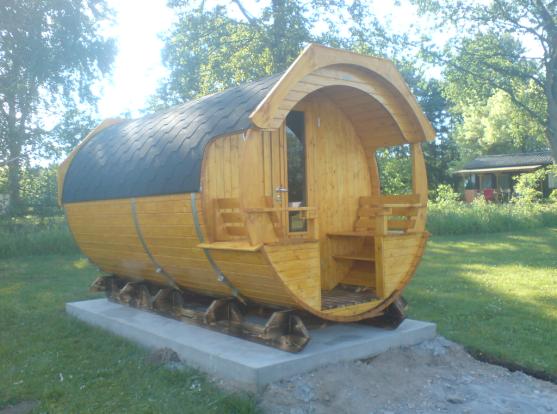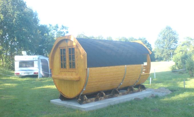 Die WOLFSBERG CAMPINGHÜTTE ist eine Riesentonne zum Übernachten. Übernachten und wohnen in einer großen Fass-Hütte auch geeignet als Gartenhaus oder Gästehaus in Fassform.