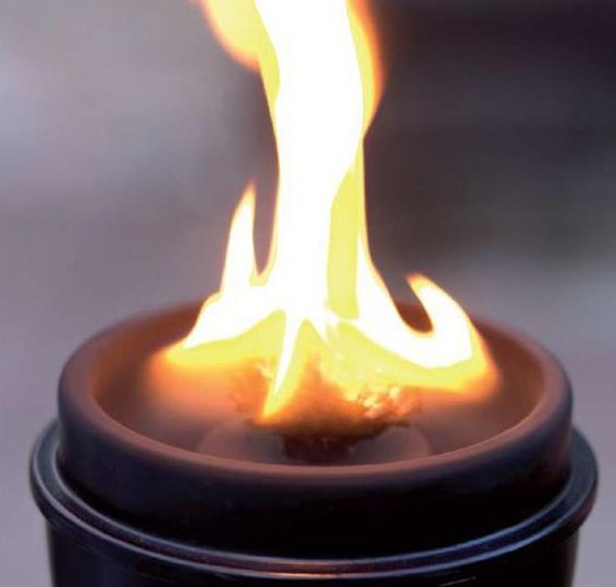 • Entgegen Baumwolldochten hat die Swing Fackel einen Glasfaserdocht, der sehr lange hält und eine windbeständige Flamme erzeugt.